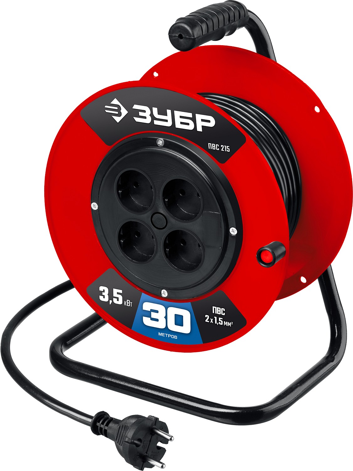 ЗУБР ПВС-215, ПВС, 2 х 1.5 мм2, 30 м, 3500 Вт, силовой удлинитель на катушке (55103-30)