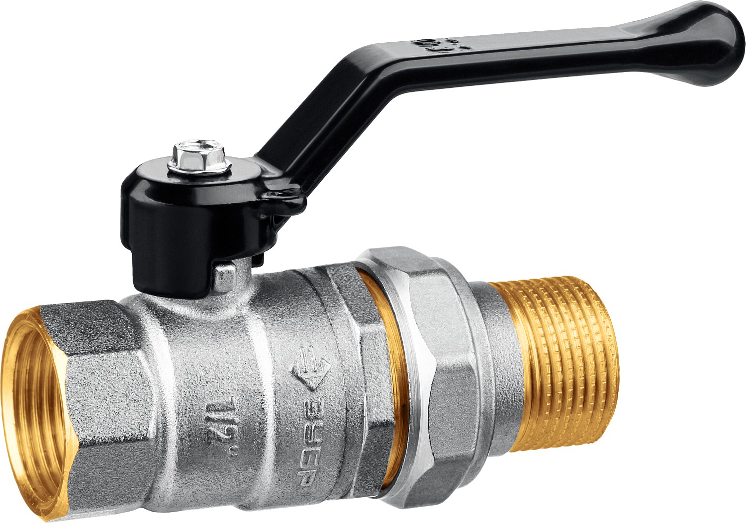 ЗУБР d 1/2″, ручка-рычаг, ″мама-папа″, полнопроходной шаровой кран с накидной гайкой (51320-1/2)
