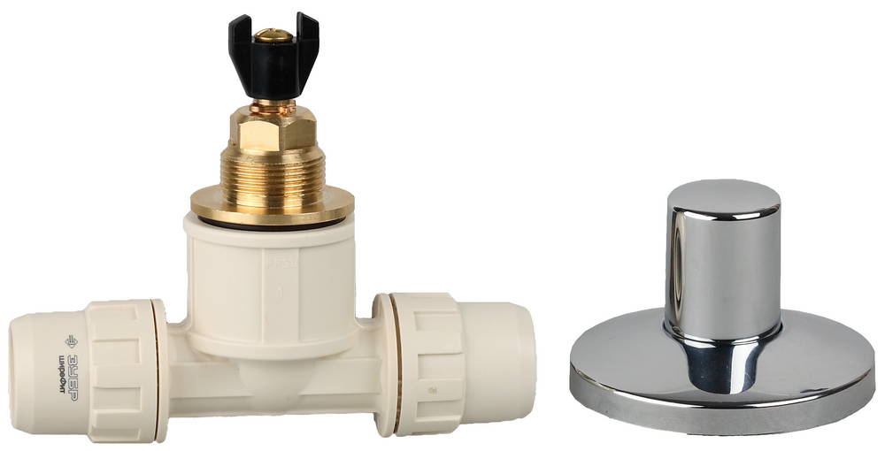 ЗУБР ШиреФит, внутренняя резьба - штуцер с гайкой - штуцер с гайкой, 32 - 20 - 32 мм, сборный коллектор с вентилем (51517-32-20-32)