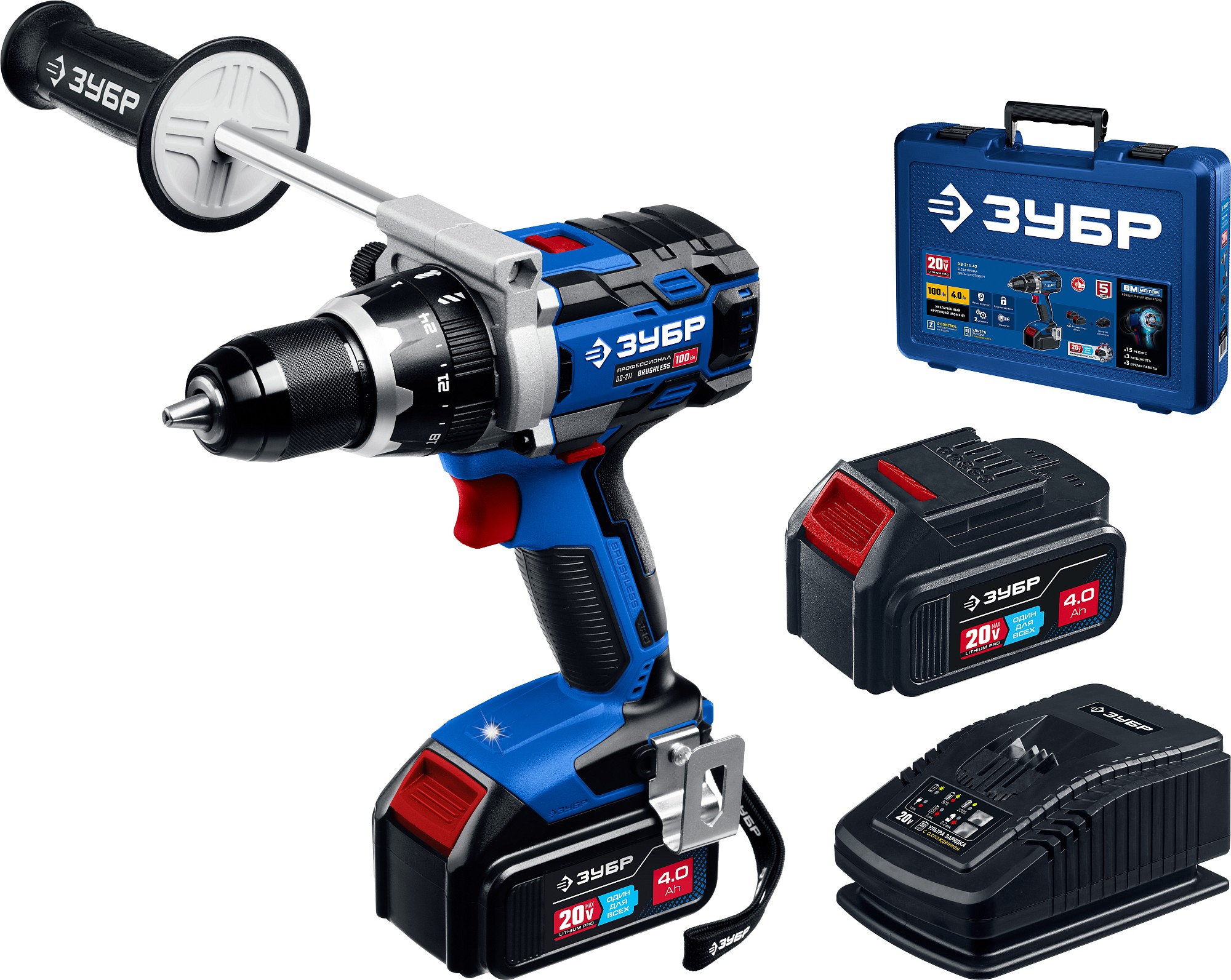 ЗУБР Т7, 20 В, 100 Н·м, 2 АКБ (4 А·ч), бесщеточная дрель-шуруповерт, кейс, Профессионал (DB-211-42)