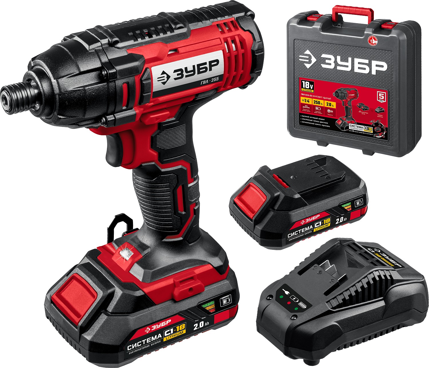 ЗУБР С1-18, 18 В, 250 Н·м, 2 АКБ (2 А·ч), винтоверт ударный, кейс (ГВЛ-255-22)