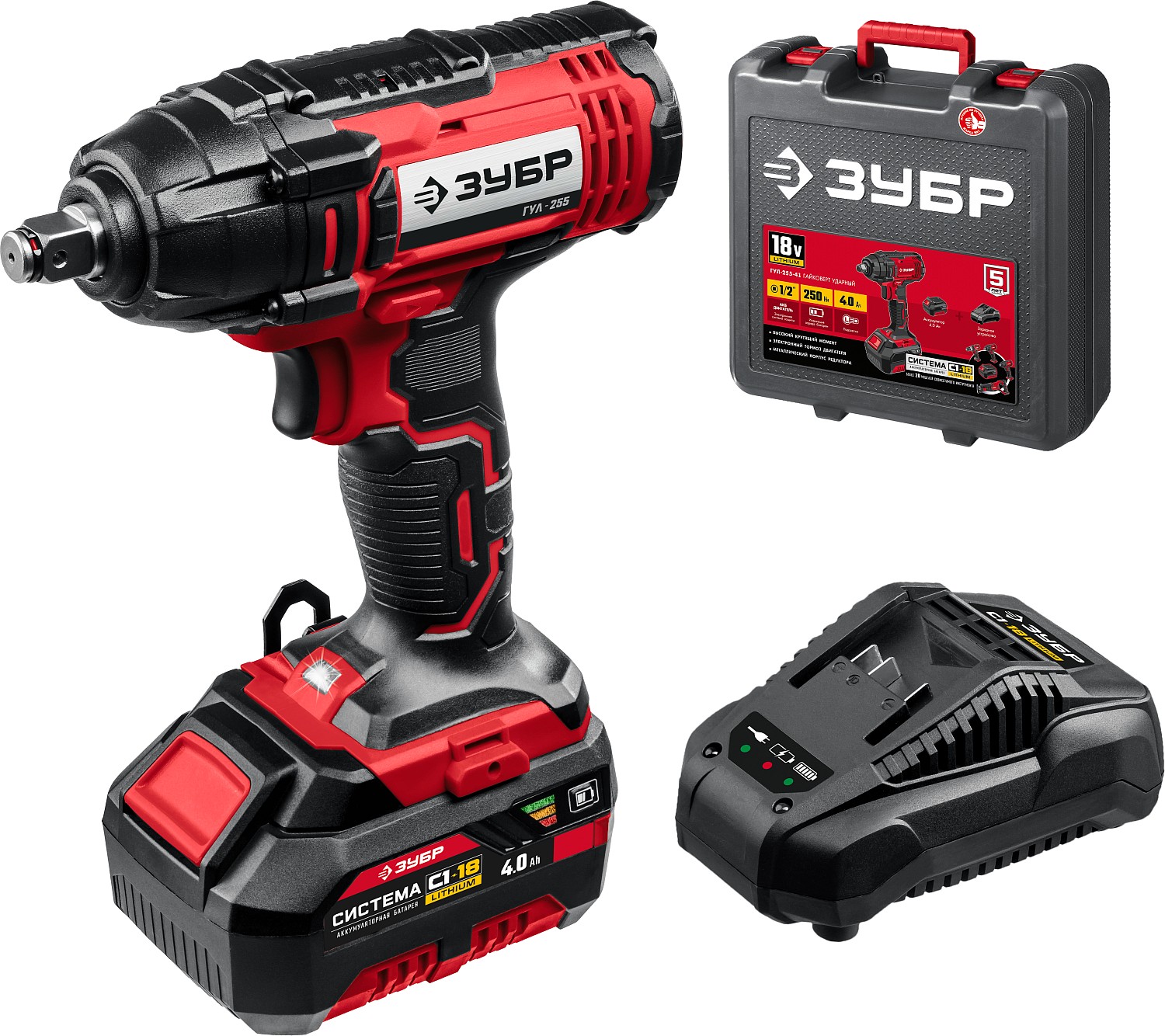ЗУБР С1-18, 18 В, 250 Н·м, 1 АКБ (4 А·ч), гайковерт ударный, кейс (ГУЛ-255-41)