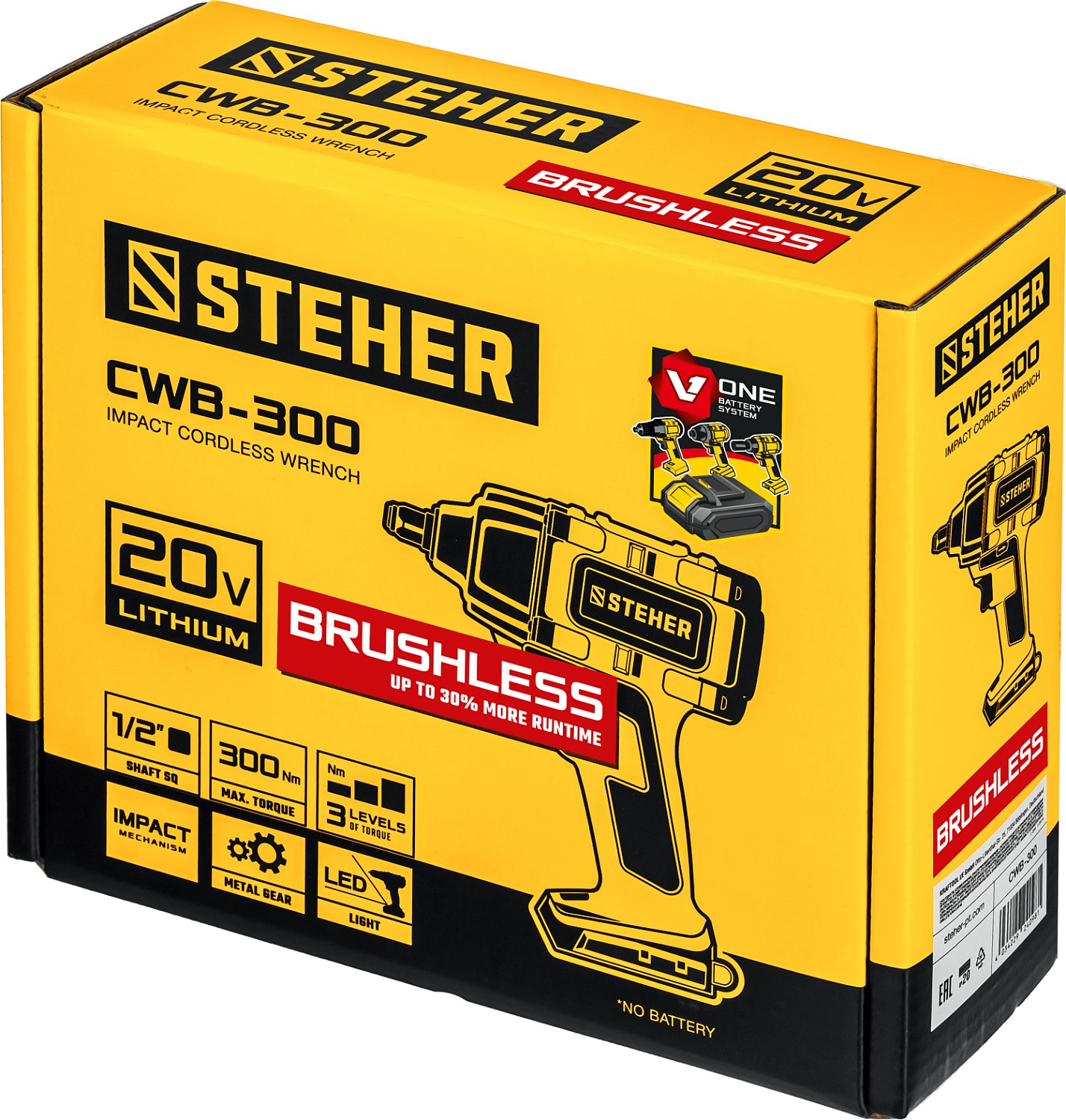 STEHER V1, 20 В, 300 Н·м, 1 АКБ (4 А·ч), бесщеточный гайковерт, кейс (CWB-300-1)