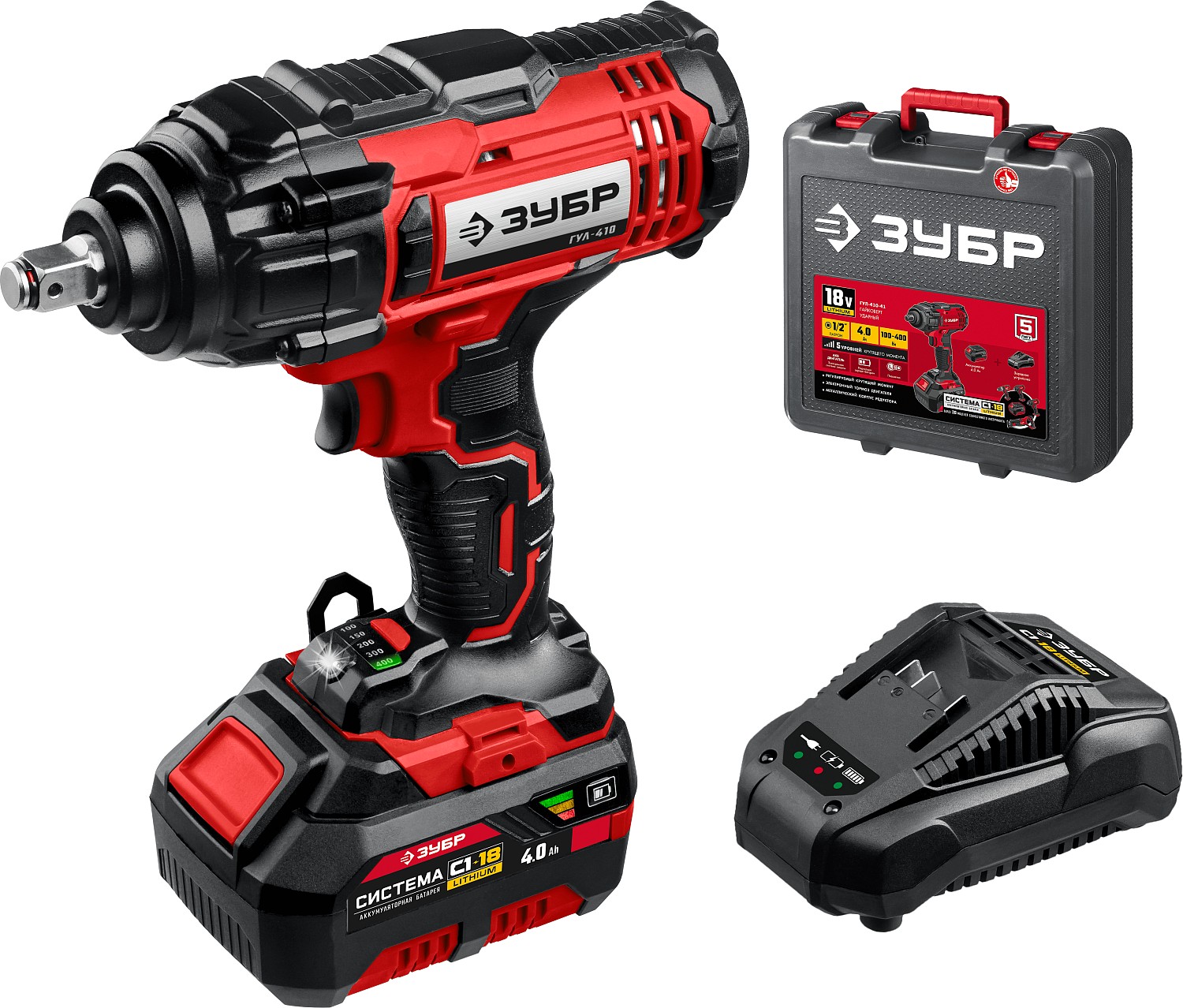 ЗУБР С1-18, 18 В, 400 Н·м, 1 АКБ (4 А·ч), гайковерт ударный, кейс (ГУЛ-410-41)