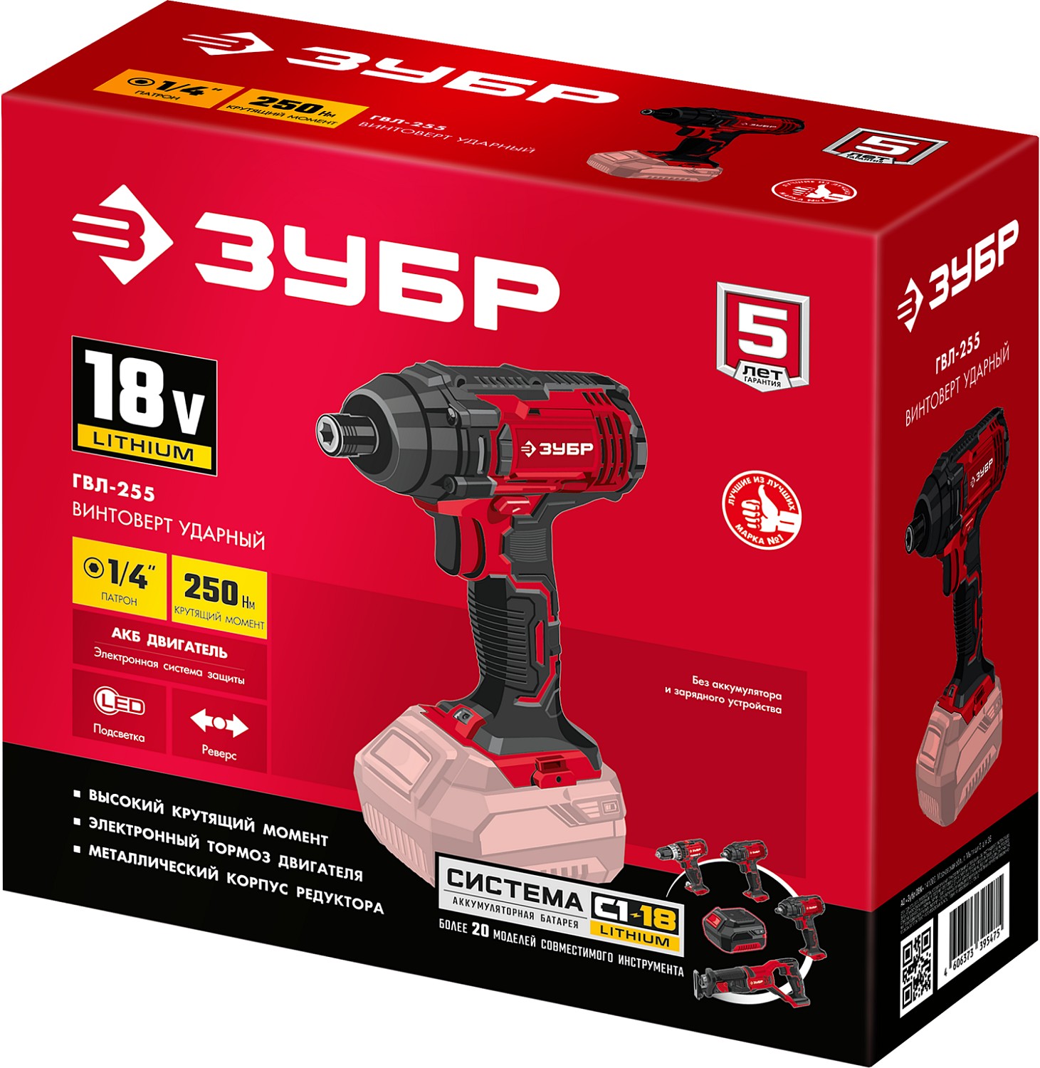 ЗУБР С1-18, 18 В, 250 Н·м, без АКБ, винтоверт ударный (ГВЛ-255)