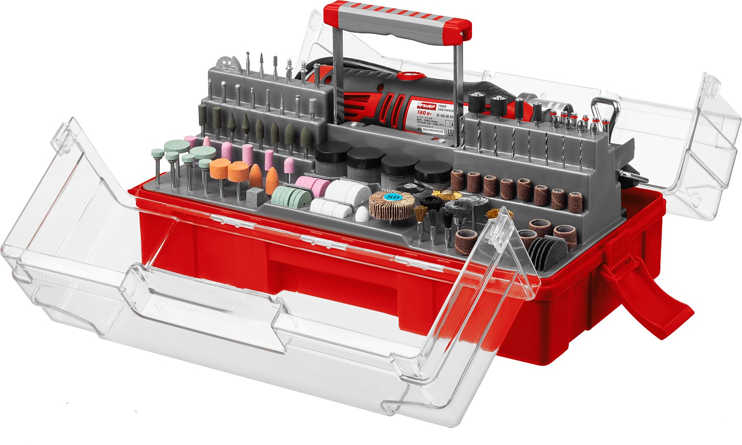 ЗУБР 176 предметов, 130 Вт, набор мини-насадок с гравером (ЗГ-130ЭК H176)