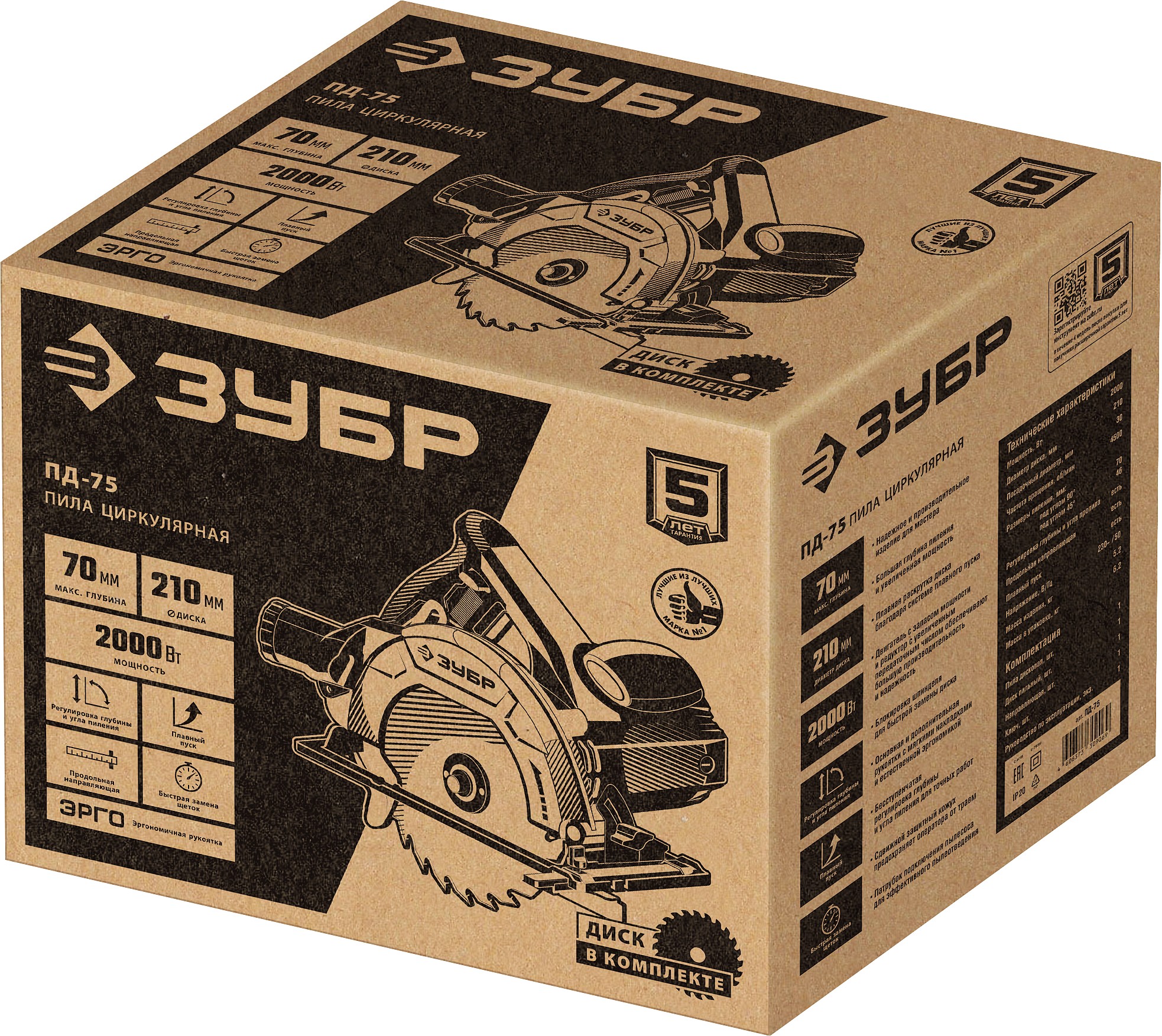 ЗУБР d 210 мм, 2000 Вт, циркулярная пила (дисковая) (ПД-75)