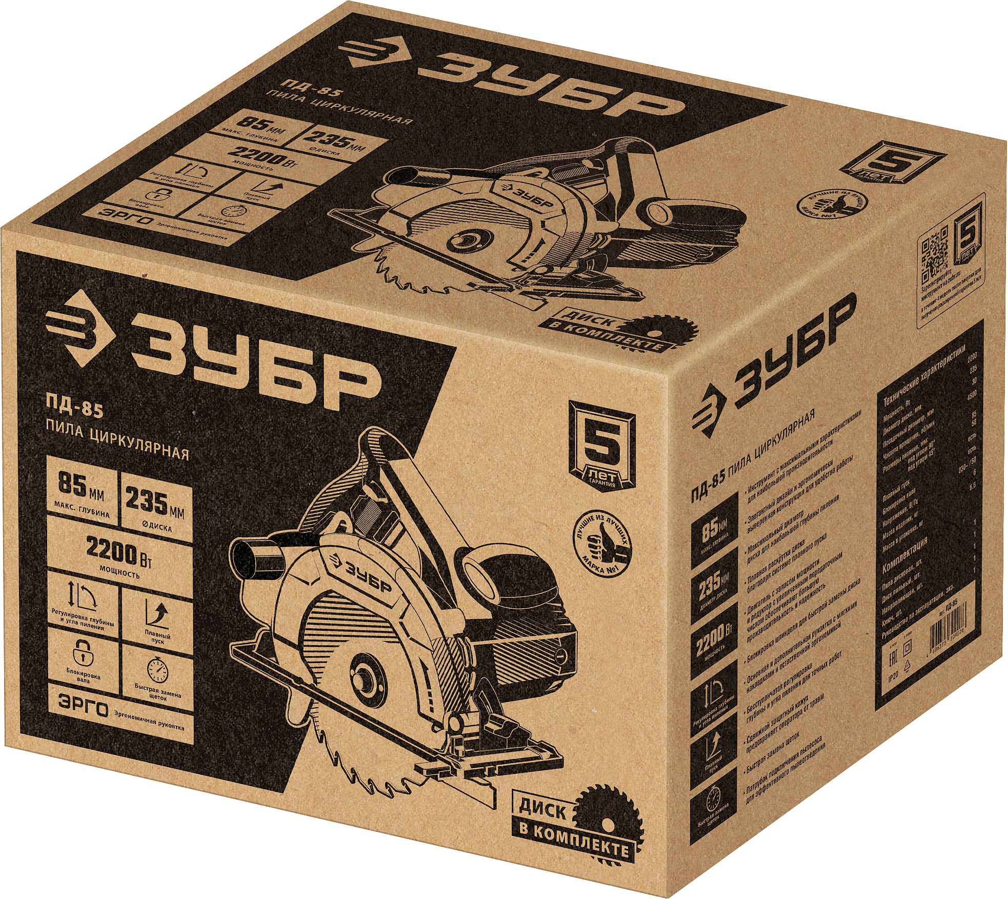ЗУБР d 235 мм, 2200 Вт, циркулярная пила (дисковая) (ПД-85)
