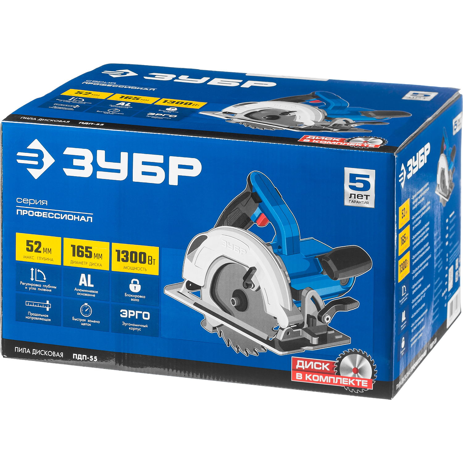 ЗУБР d 165 мм, 1300 Вт, циркулярная пила (дисковая), Профессионал (ПДП-55)
