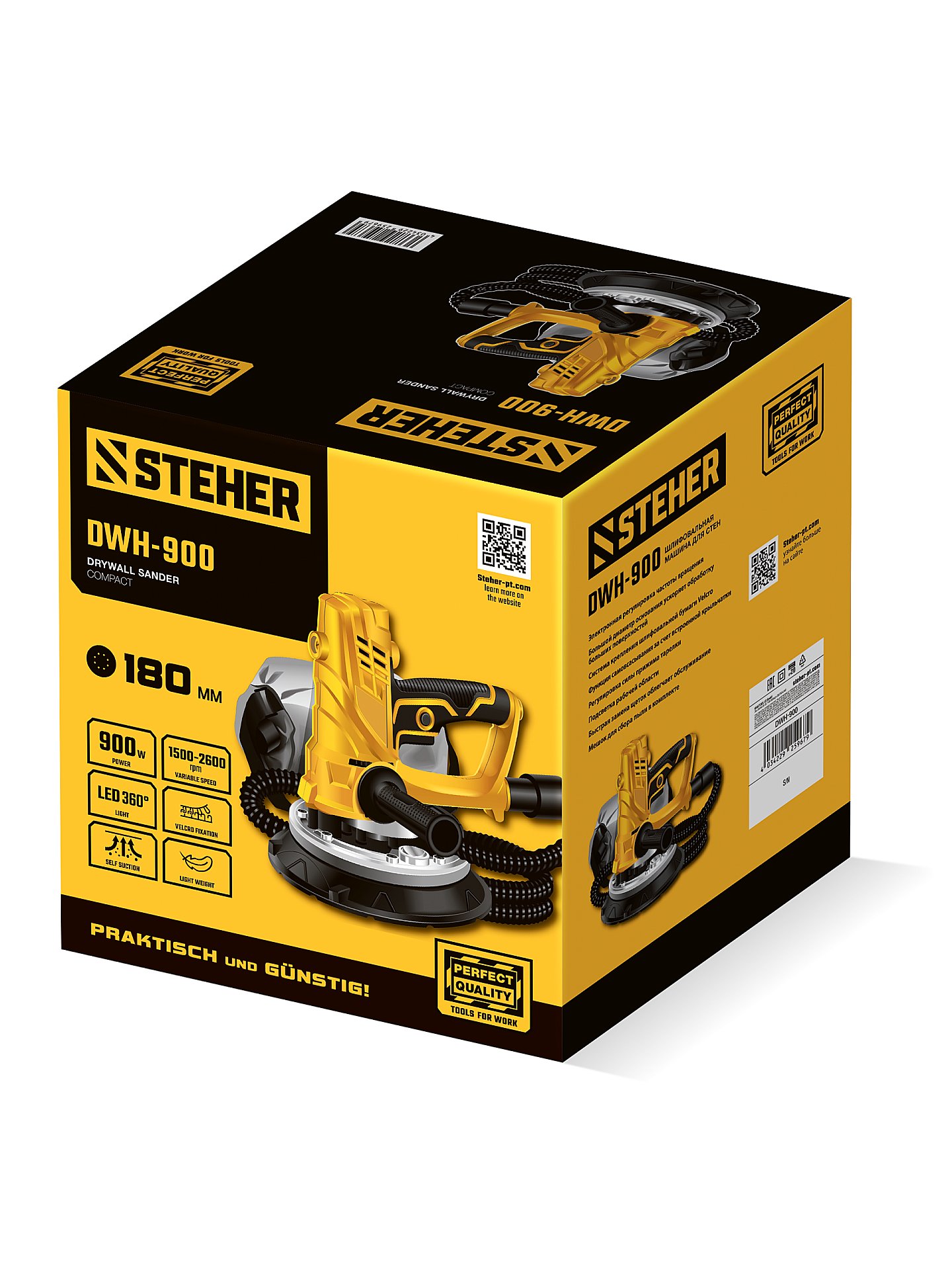 STEHER d180 мм, 900 Вт, подсветка, шлифовальная машина для стен (DWH-900)