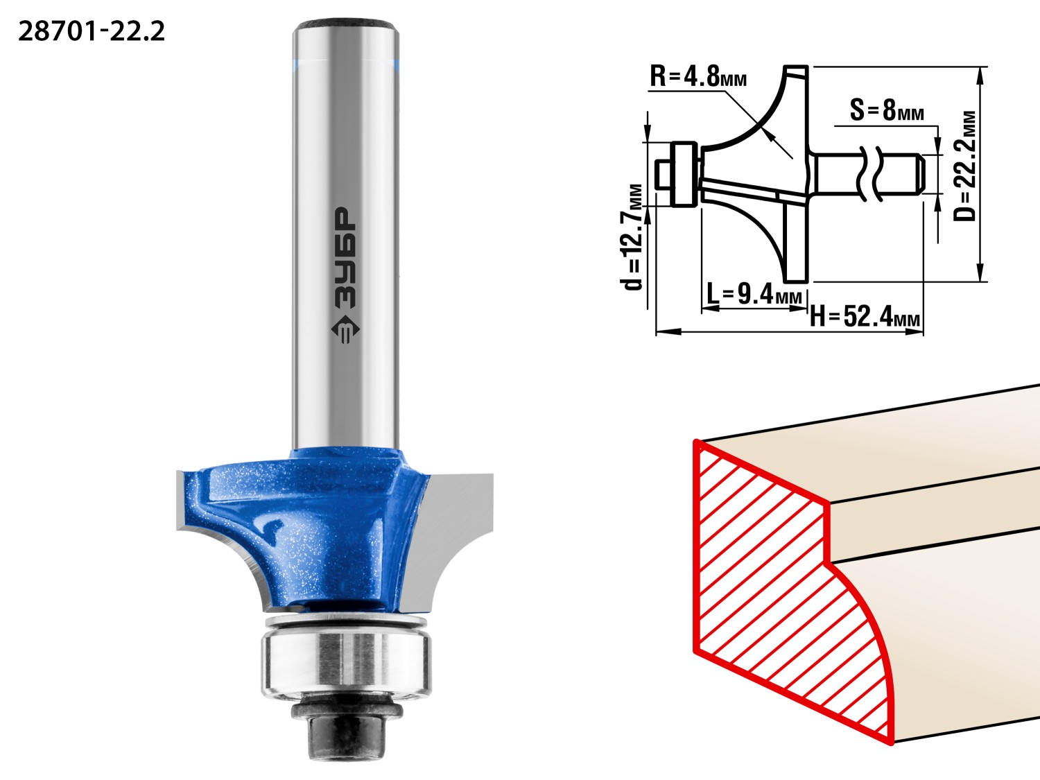 ЗУБР 22.2 x 9.4 мм, радиус 4.8 мм, фреза кромочная калевочная №1, Профессионал (28701-22.2)