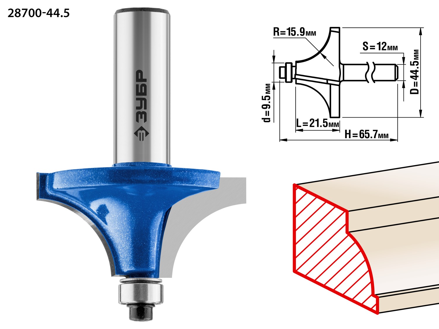 ЗУБР 44.5 x 21.5 мм, радиус 15.9 мм, фреза кромочная калевочная №1, Профессионал (28700-44.5)