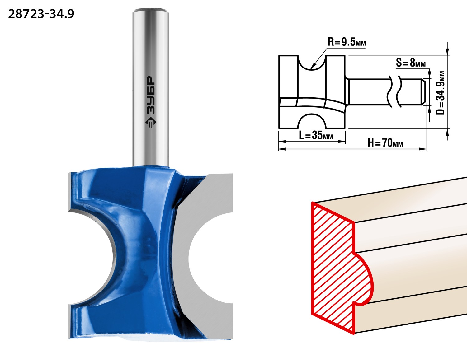 ЗУБР 34.9 x 35 мм, радиус 9.5 мм, фреза полустержневая, Профессионал (28723-34.9)