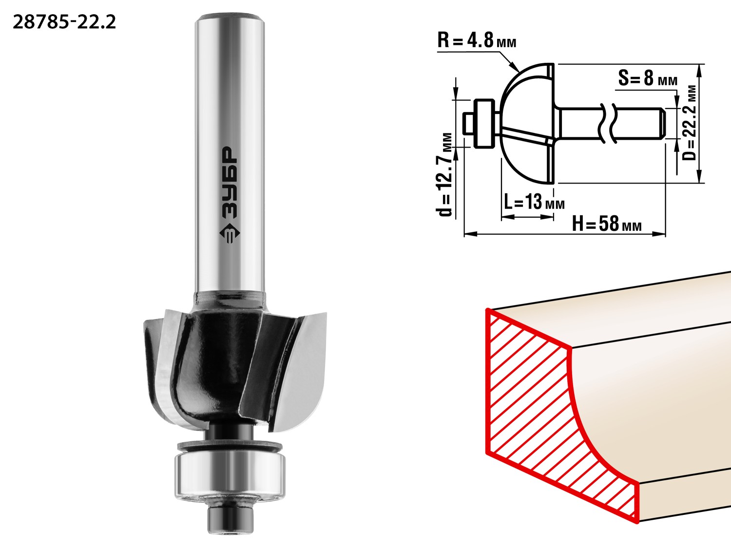 ЗУБР 22.2 x 13 мм, радиус 4.8 мм, фреза кромочная калевочная №2, Профессионал (28785-22.2)