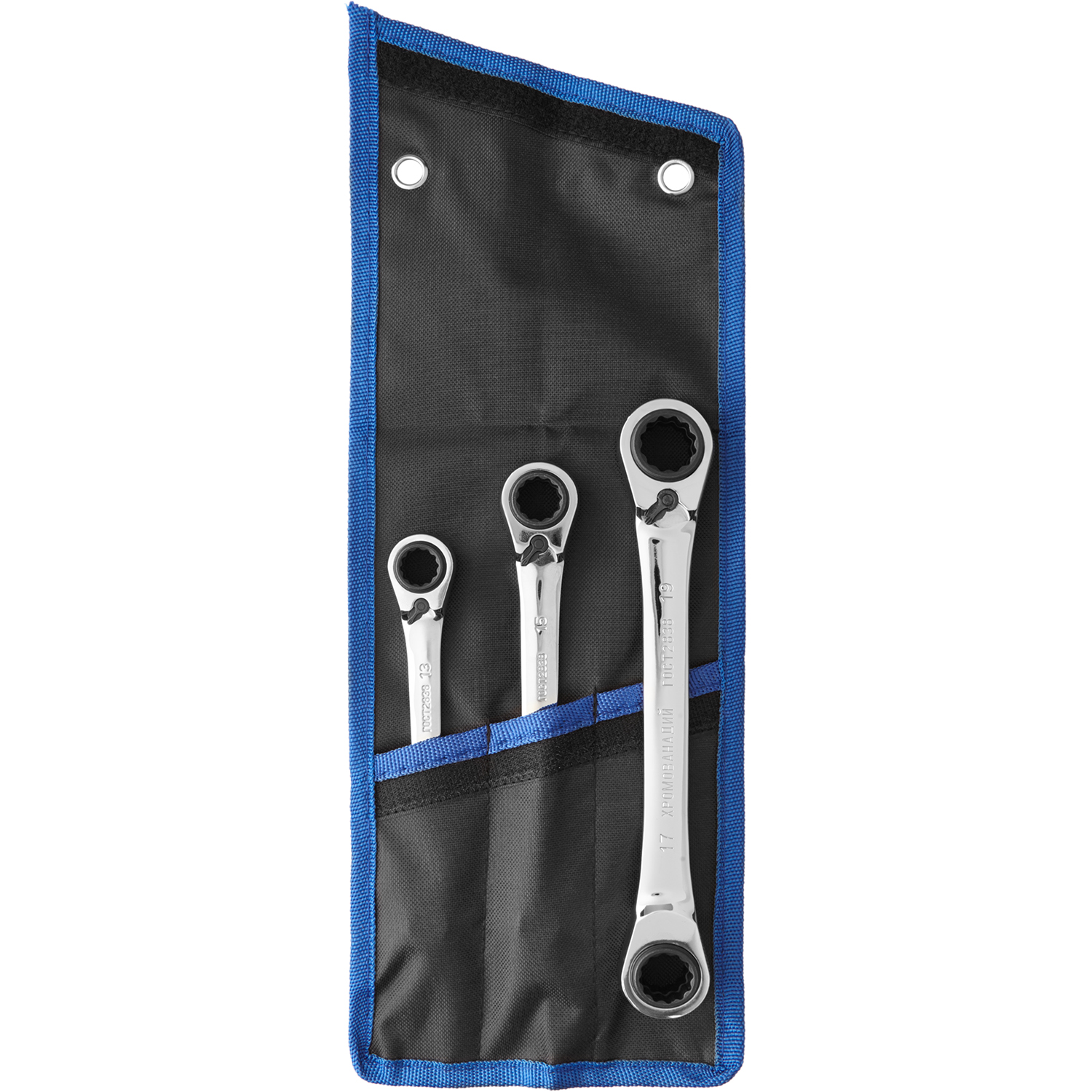 ЗУБР 3 шт, набор накидных трещоточных гаечных ключей, Профессионал (27105-H3)