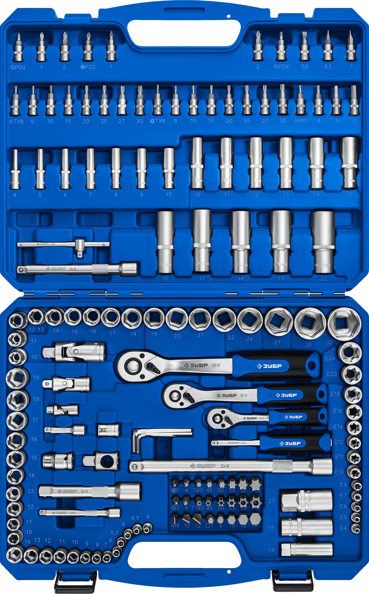 ЗУБР А-151, 151 предм., (1/2″+ 3/8″+ 1/4″), универсальный набор инструмента, Профессионал (27637-H150)