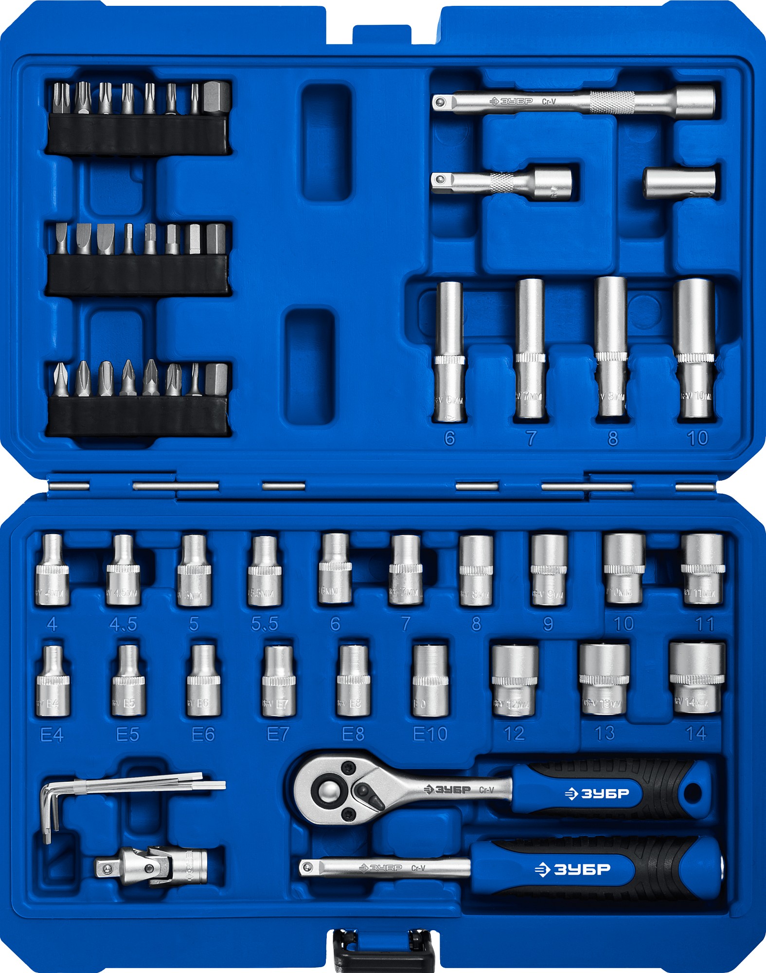 ЗУБР А-57, 57 предм., (1/4″), универсальный набор инструмента, Профессионал (27671-H57)
