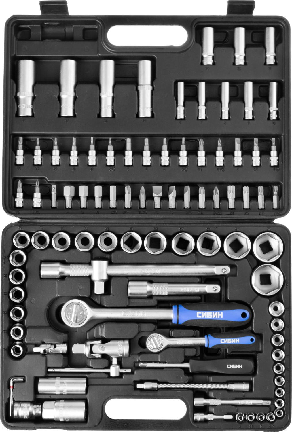 СИБИН 56 предм., (1/2″+1/4″), универсальный набор инструмента (27765-H56)