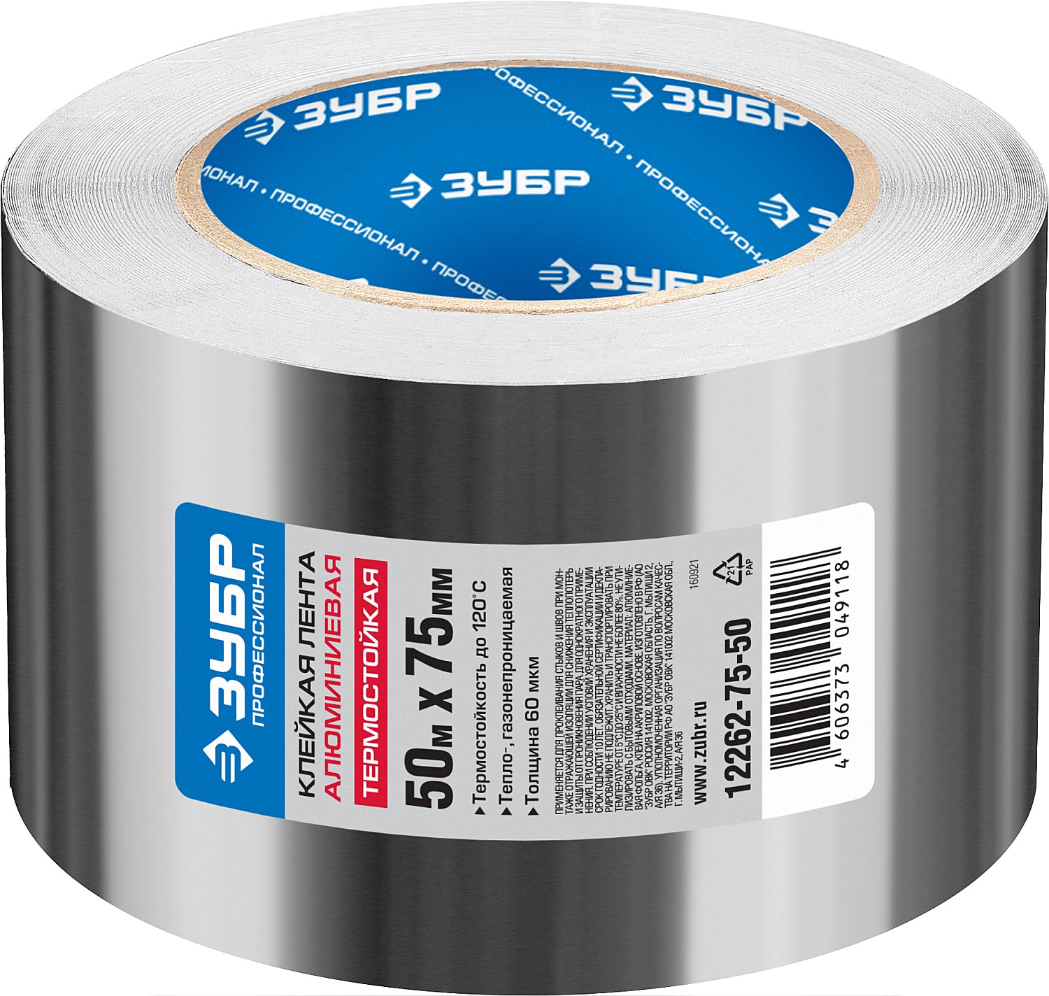 ЗУБР 75 мм, 50 м, 60 гр/м2, самоклеящаяся алюминиевая лента, Профессионал (12262-75-50)