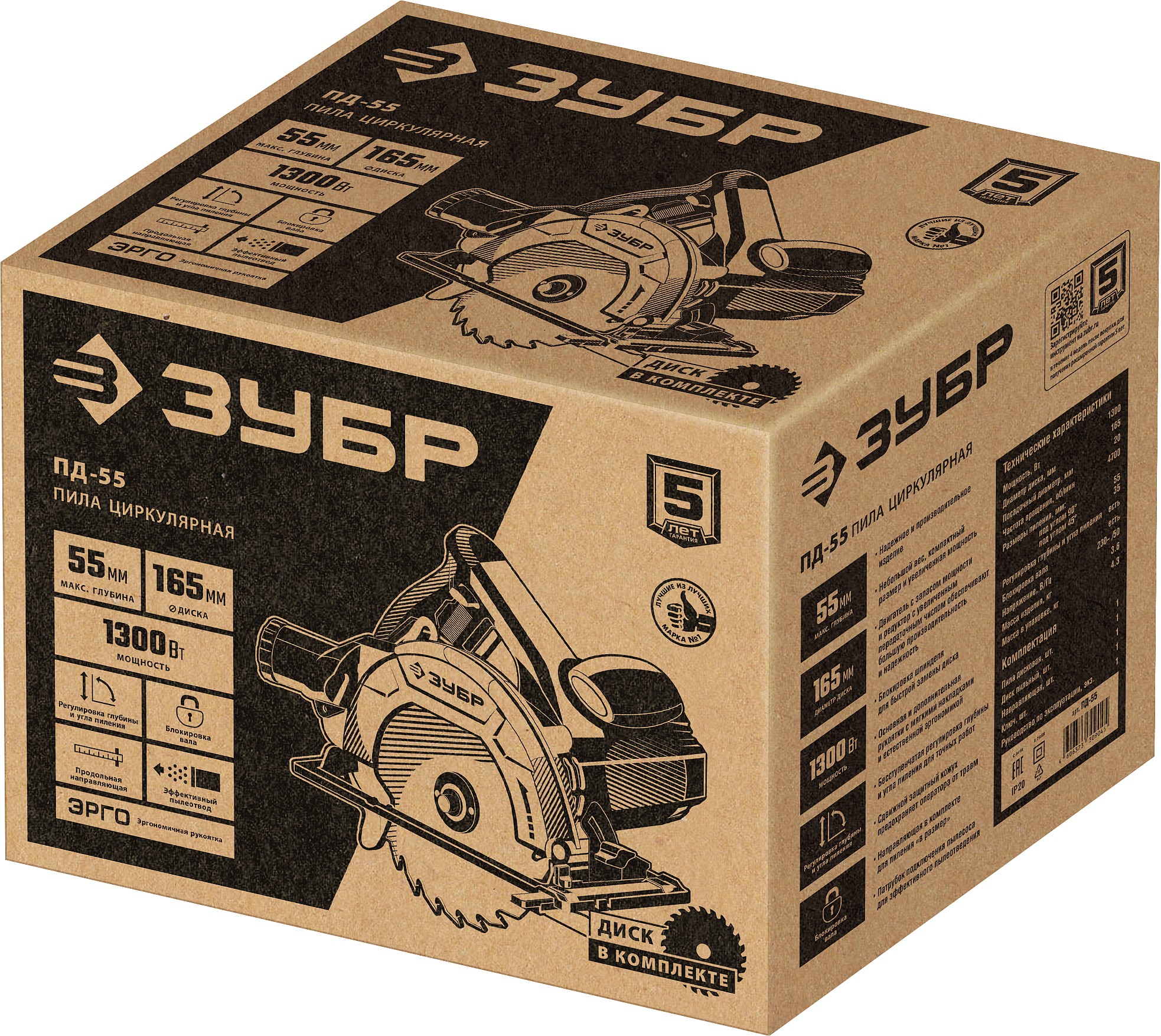 ЗУБР d 165 мм, 1300 Вт, циркулярная пила (дисковая) (ПД-55)