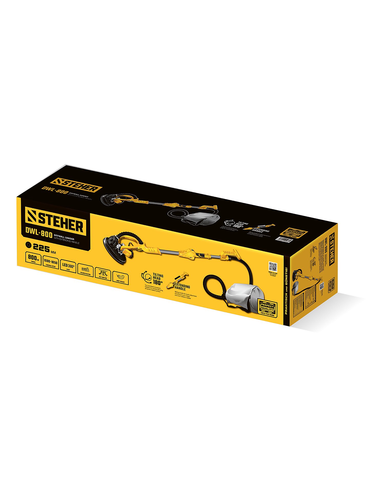 STEHER d225 мм, 800 Вт, удлиненная рукоятка, подсветка, шлифовальная машина для стен (жираф) (DWL-800)