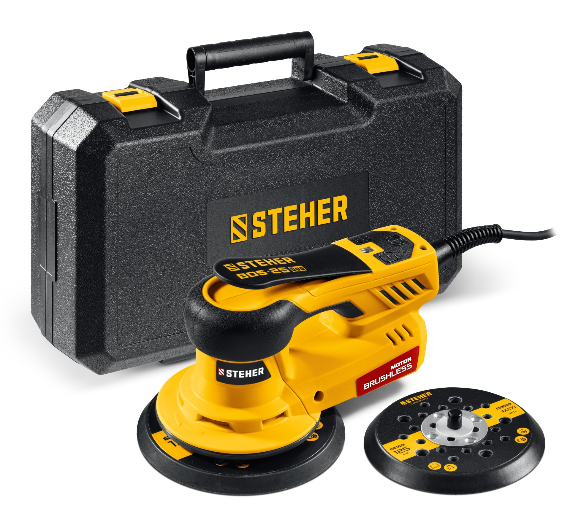 STEHER BOS-25 Duo, d125 / d150 мм, 2.5 мм, 350 Вт, бесщеточная орбитально-шлифовальная машина, кейс (BOS-25)