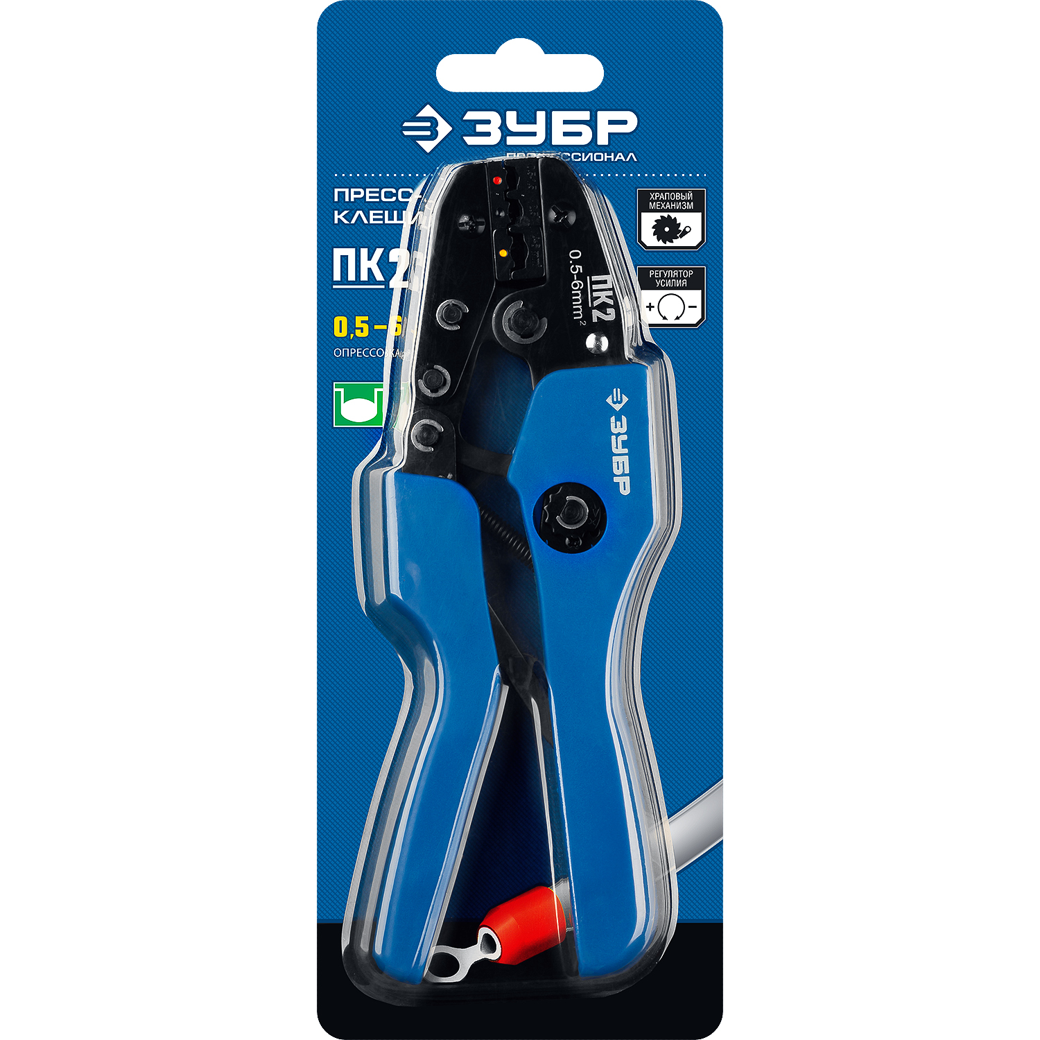 ЗУБР ПК-2, 0.5 - 6 мм2, пресс-клещи для изолированных наконечников и соединительных муфт, Профессионал(45456-2)