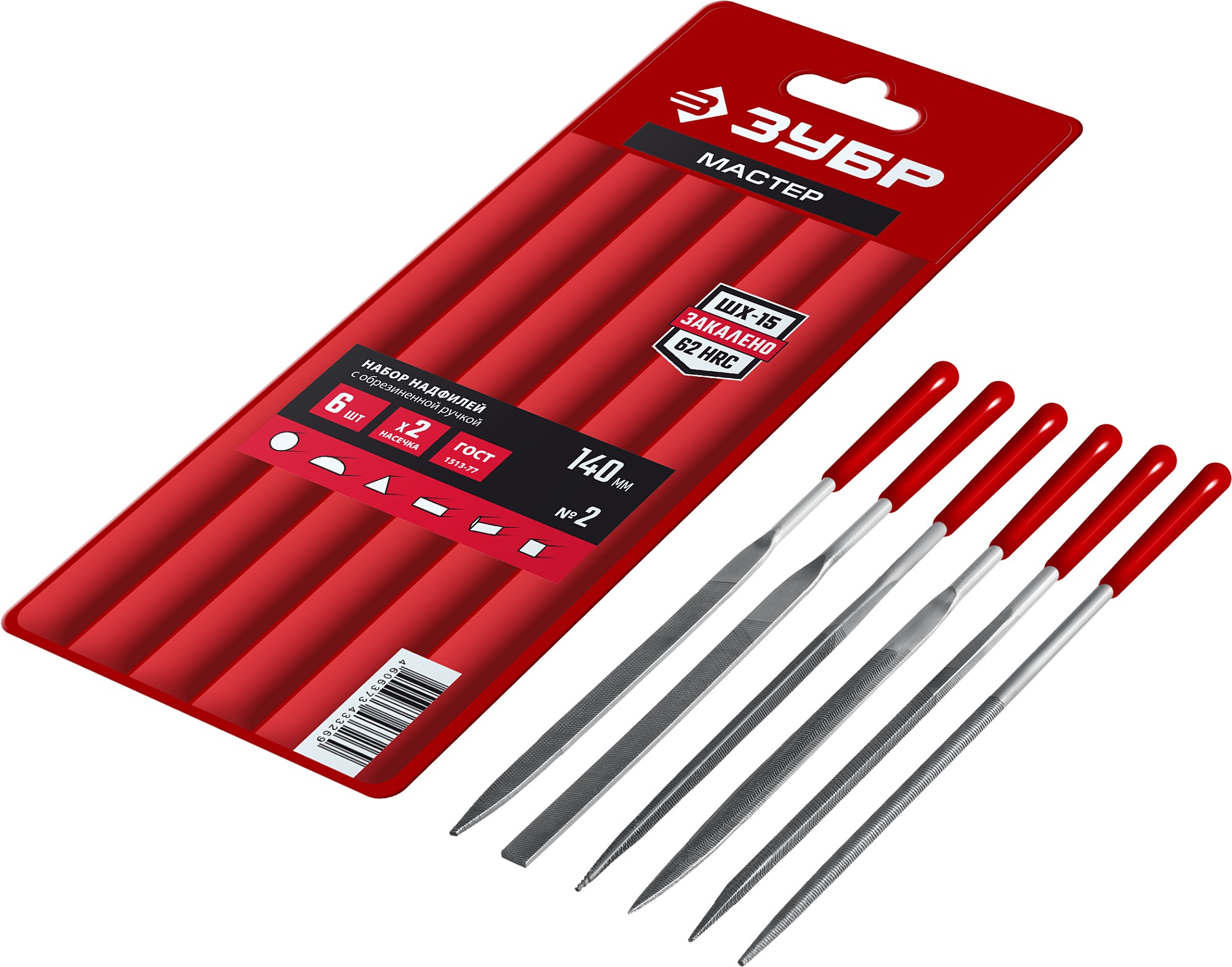 ЗУБР 6 шт, 140 мм, в чехле, с ручками, набор надфилей (16014-H6)