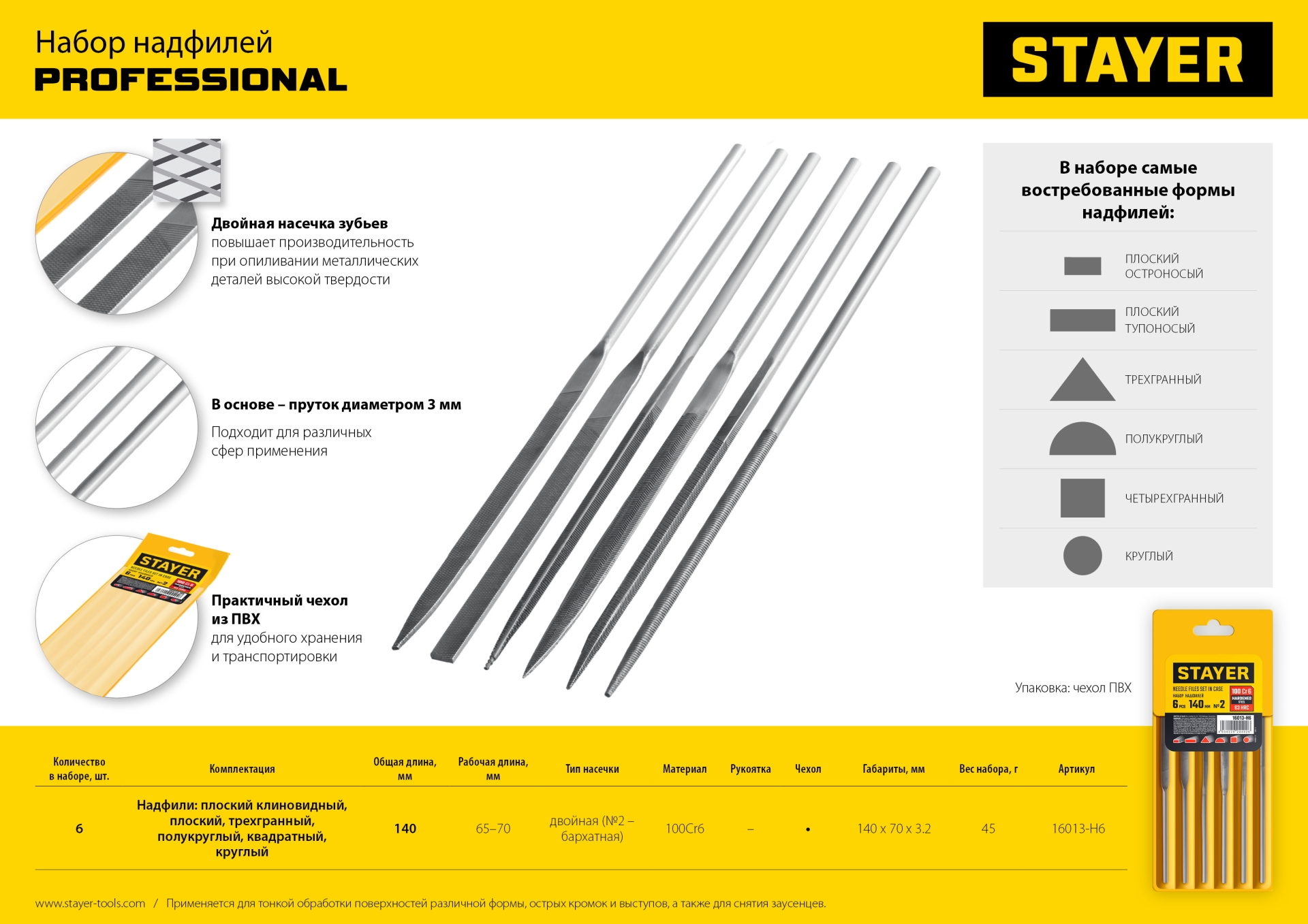 STAYER 140 мм, 6 предм., набор надфилей (1603-10-H6)